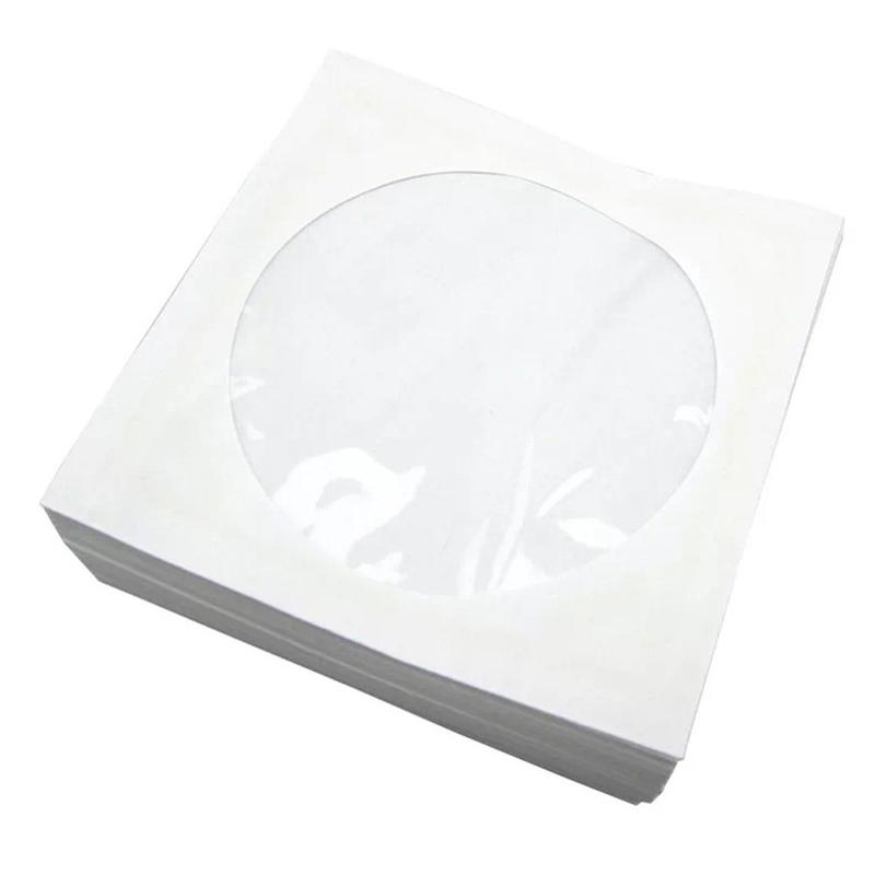 100-Pack Paper CD/DVD Envelopes with Transparent Window - 12x12cm