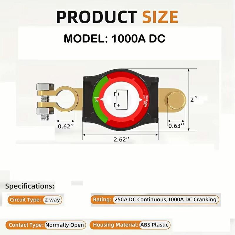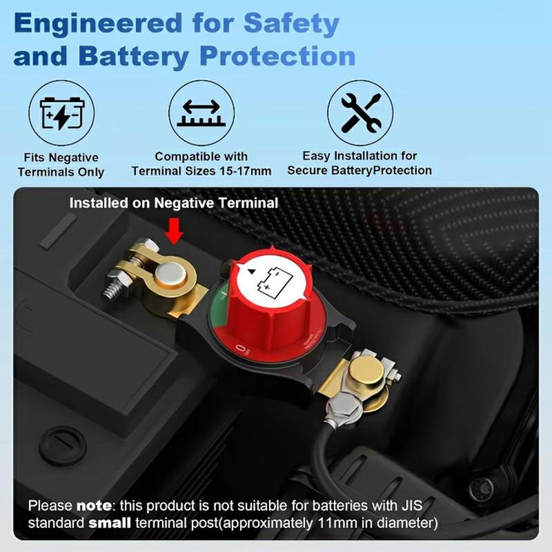 Use it in a car that is parked for several days at a time, in a truck that needs a reliable battery shut-off during maintenance, in an RV during off-season storage, or in a boat to help prevent unwanted power drain when not in use. It is also useful for camping setups and other battery-powered systems where fast isolation is important.