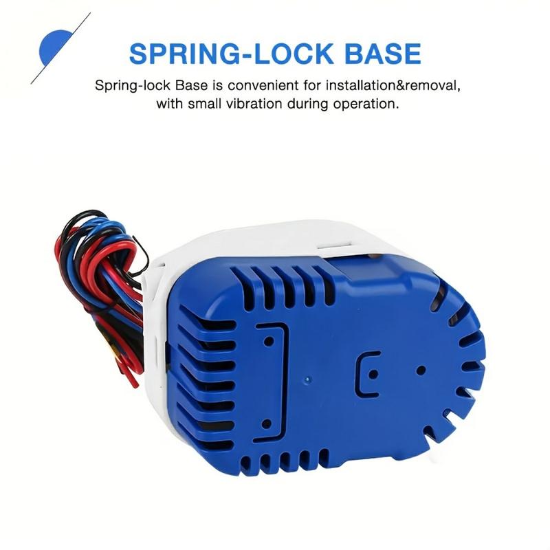 - Automatic bilge pump with built-in float switch for hands-free operation