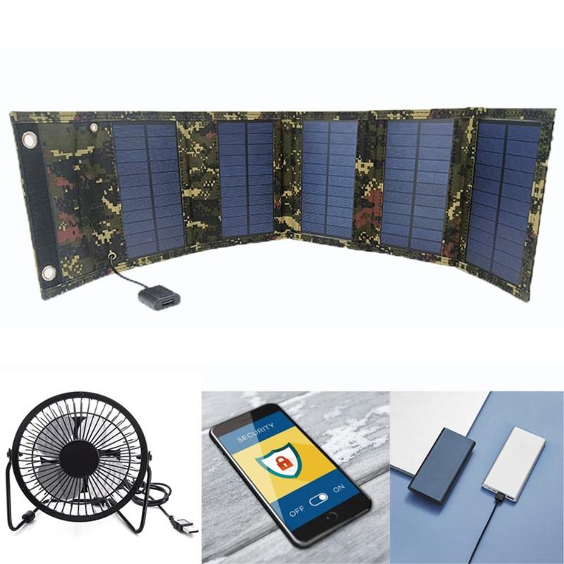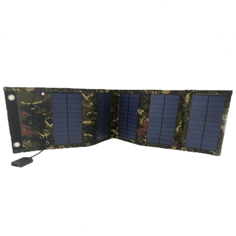 Stay powered outdoors with this 15W portable solar charger featuring five folding panels for better sun capture in a travel-friendly size. Built with monocrystalline silicon for higher efficiency, it's designed to charge phones and other 5V USB devices when you re hiking, camping, cycling, or preparing for emergencies. Simply unfold the panels, angle them toward the sun, and plug in your device via the USB output. The lightweight, foldable design makes it easy to carry in a backpack, and the included carabiners let you attach it to your gear or hang it on a tent for convenient charging while you move or rest.