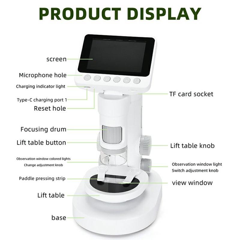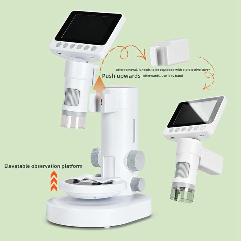The versatile design allows the microscope to be used as a handheld device or mounted on the desktop stand. This flexibility makes it suitable for different activities, from close-up object inspection to stable slide observation.