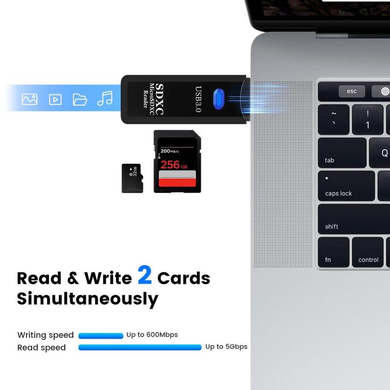 This 2-in-1 USB 3.0 card reader is a practical accessory for quickly reading and transferring files from SD and TF memory cards. Designed for everyday convenience, it supports a wide range of common card formats and offers high-speed USB 3.0 performance for smoother file management. Whether you are moving photos, videos, documents, or other data, this compact memory card adapter helps simplify the process at home, in the office, or while travelling.