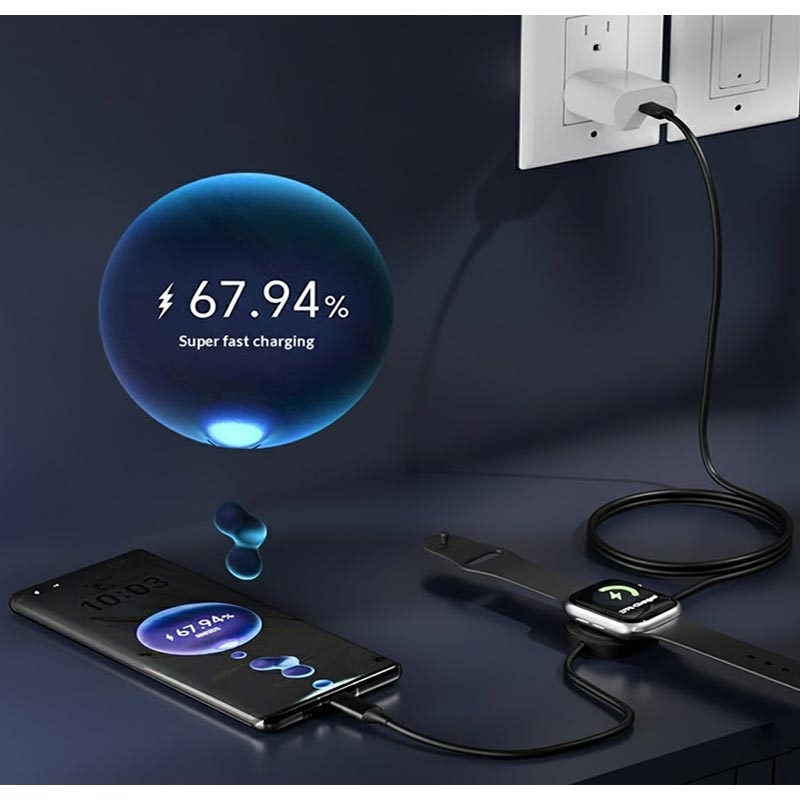 This 1.2 m 2-in-1 Type-C fast charging cable combines powerful 100W PD charging with a magnetic wireless charger for Apple Watch, offering a convenient, high-speed solution for both smartphone and smartwatch users. Featuring a pure copper core for stable power output and enhanced battery protection, it ensures efficient and reliable charging every time. The strong magnetic attachment guarantees secure placement and perfect alignment, making charging effortless. Zwarth support for PD, QC and FCP fast-charging protocols, this versatile cable is compatible with a wide variety of devices across multiple brands. Compact, durable and travel-friendly, it is the ideal all-in-one charging tool for home, office or on-the-go use.