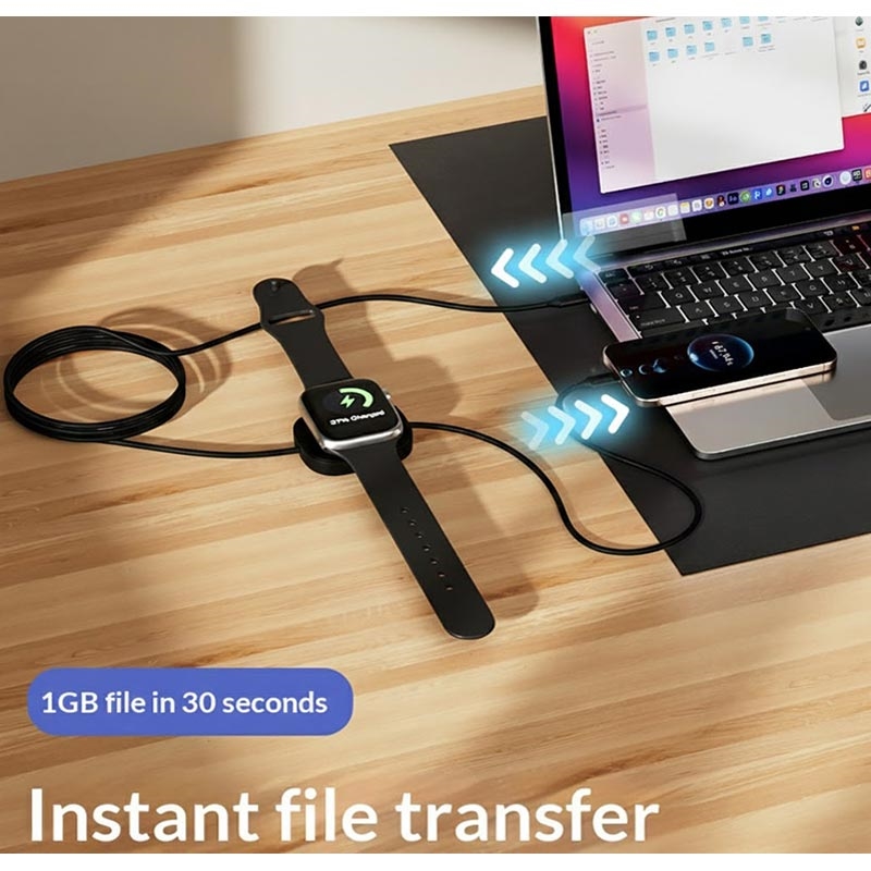 This 2-in-1 fast charging cable eliminates clutter by combining a powerful 100W PD connector with a magnetic Apple Watch charger. The strong magnet ensures perfect, worry-free alignment, while the copper core enhances efficiency and protects device batteries during fast charging. Its wide protocol compatibility makes it ideal for users with multiple devices—offering speed, convenience and long-term reliability in one compact accessory.