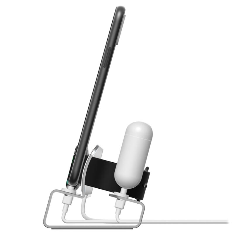 During charging, all your devices are held in a perfect viewing position. An adjustable structure on the charging stands for the iPhone and AirPods allow charging your gadgets with the protective case. The maximum thickness of the iPhone case can be 2.5mm.