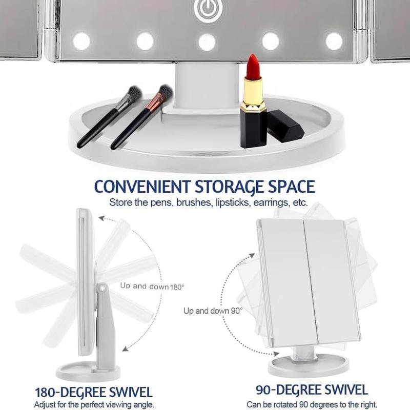 - Wide-Angle Viewing - The triple-panel design offers a comprehensive view of your face, making it easier to perfect every angle of your makeup and hairstyle.