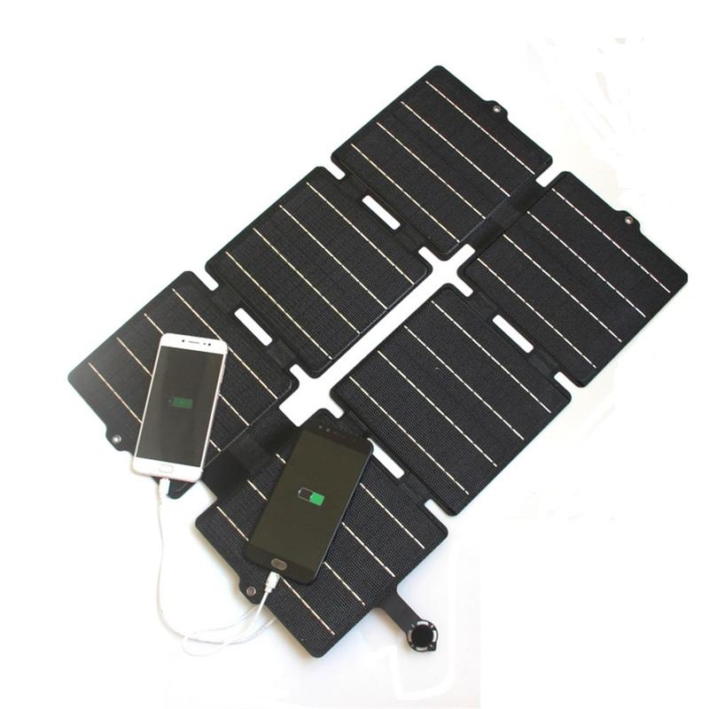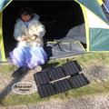 Built with Grade A monocrystalline cells and second-generation ETFE lamination, the panel is designed for stronger durability and better outdoor performance. The roll-type fold keeps it flat and compact in a bag, while soft elastic buckles add drop-resistant protection and help keep your gear secure. With dual USB and DC outputs plus intelligent voltage regulation, you can charge multiple devices efficiently when the sun is out.