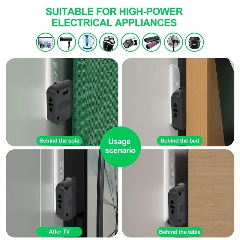- Rotatable flat plugs are especially useful behind cabinets or sofas where standard plugs often block furniture placement.