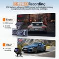 - Dual-lens system with 4K front recording and 2.5K rear recording for full coverage