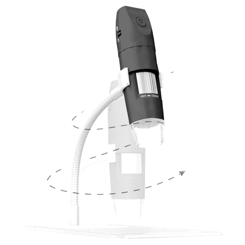 8 adjustable LED lights provide optimal clarity while 2MP camera enables you detailed observation of 3D specimens, such as insects, coins, jewelry, and allows you to enjoy every detail thanks to a 50x to 1000x magnification zoom. Connect this digital microscope using WiFi with your Android or iOS device, or with Windows or Mac computer. When the WiFi connection isn't available, you can use microUSB cable to pair this gadget to USB enabled device.