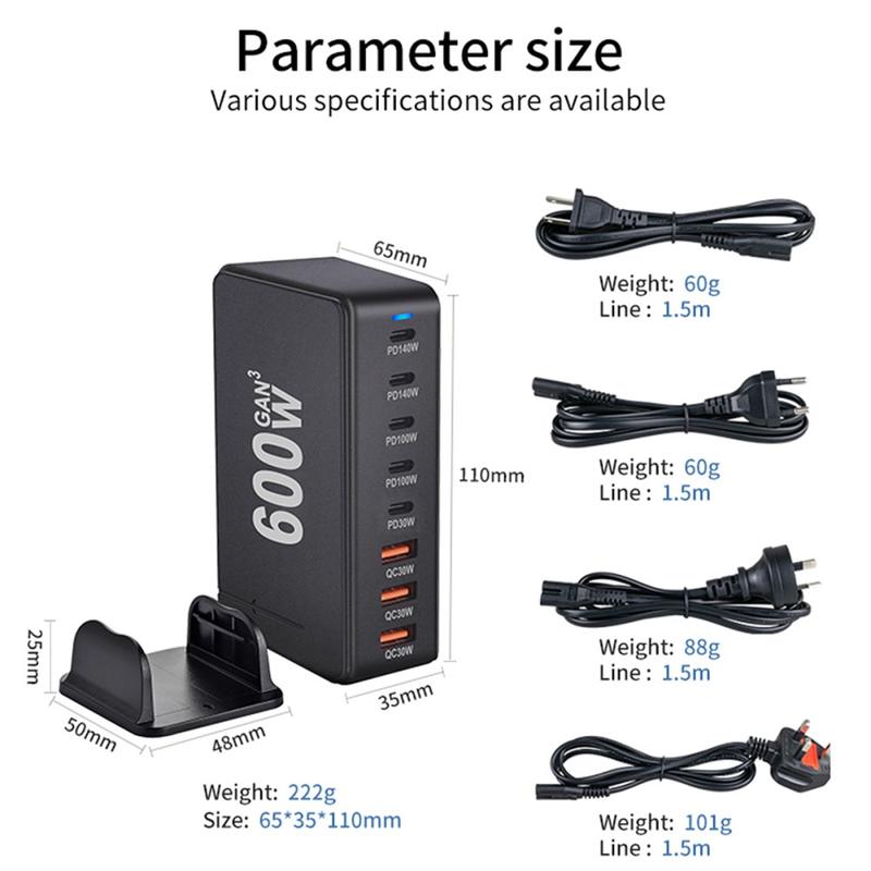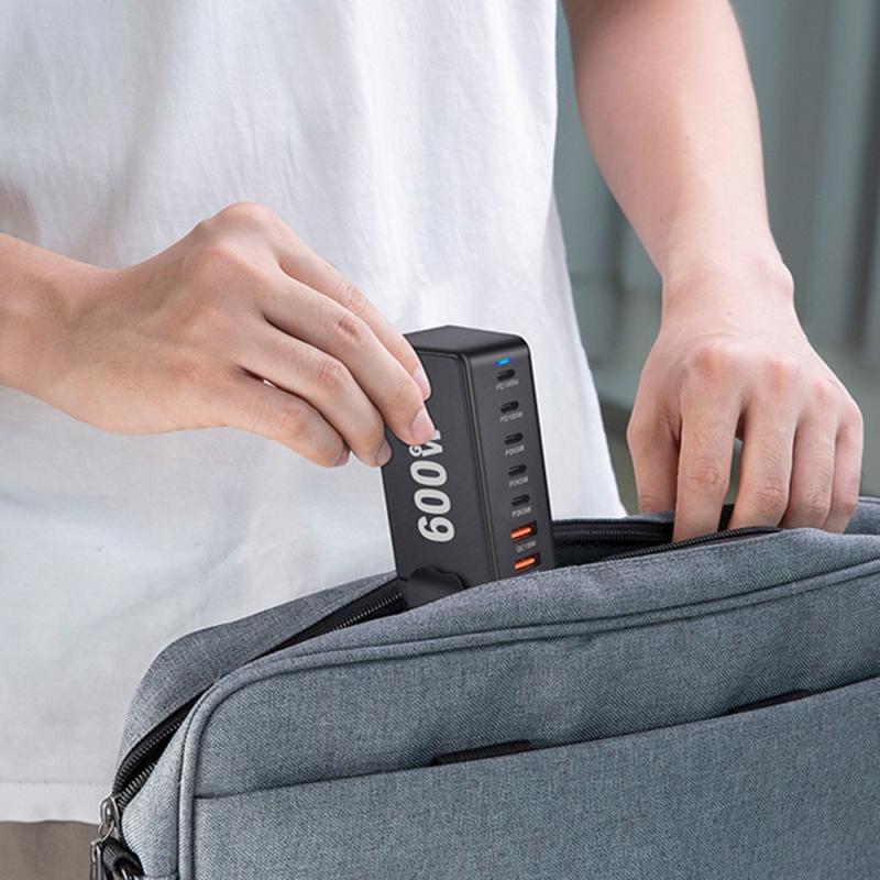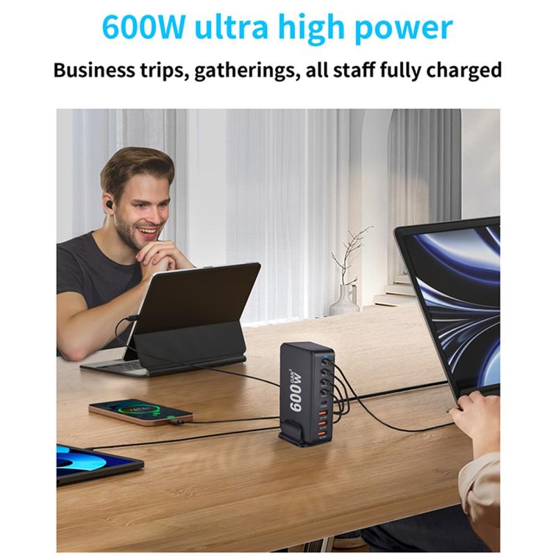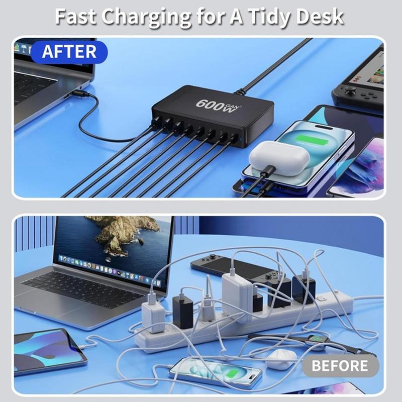 600W GaN Desktop Charging Station - 8 Ports (5x USB-C + 3x USB-A) PD3.1 Fast Charger, Up to 140W USB-C, Intelligent Power Distribution