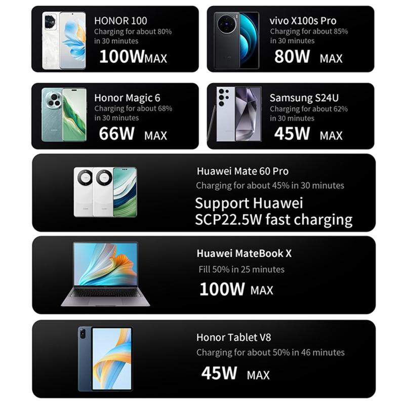 - Charging protocols: PD3.1, QC3.0 (and other mainstream fast charging standards)
