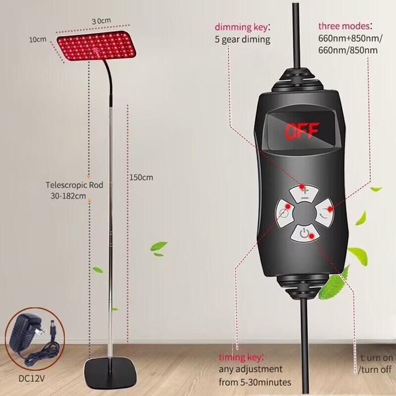 - Adjustable Timer & Height Stand - Includes an adjustable timer (5-30 minutes) and extendable stand (30-130 cm) to customize your therapy session and positioning.