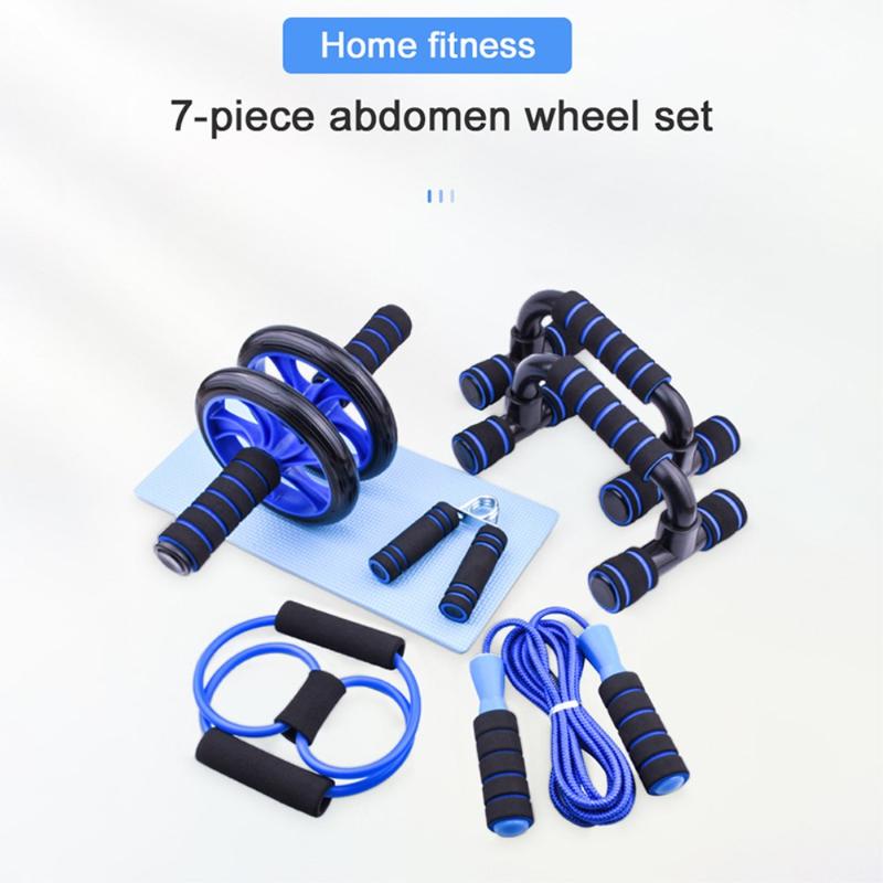7-Piece Home Fitness Training Set - Ab Roller, Push-Up Bars, Skipping Rope, Hand Gripper and Chest Expander