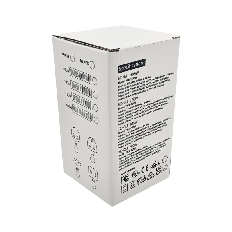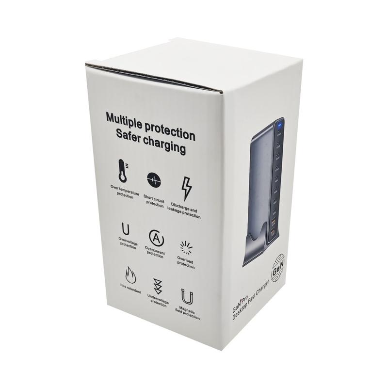 Power your entire desk from one compact hub with this 800W GaN desktop charging station. Designed for high-demand setups, it combines multiple USB-C and USB-A outputs so you can charge laptops, tablets, phones, and accessories at the same time-without a mess of separate adapters. GaN technology helps deliver high efficiency with lower heat generation, making it a smart choice for home offices, studios, repair benches, and shared charging areas.