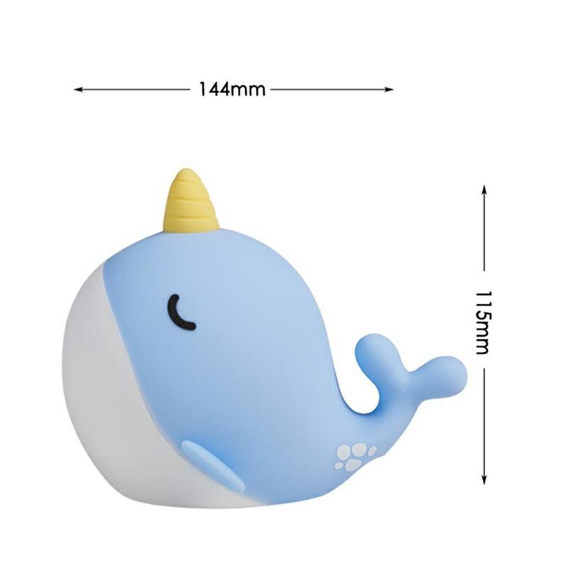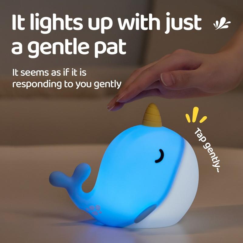 A044 Narwhal Silicone Night Light - Tap Control, USB-C Rechargeable & Soft Ambient Glow