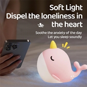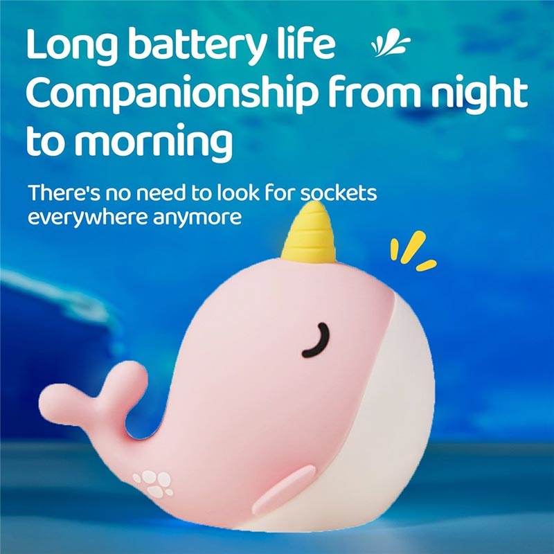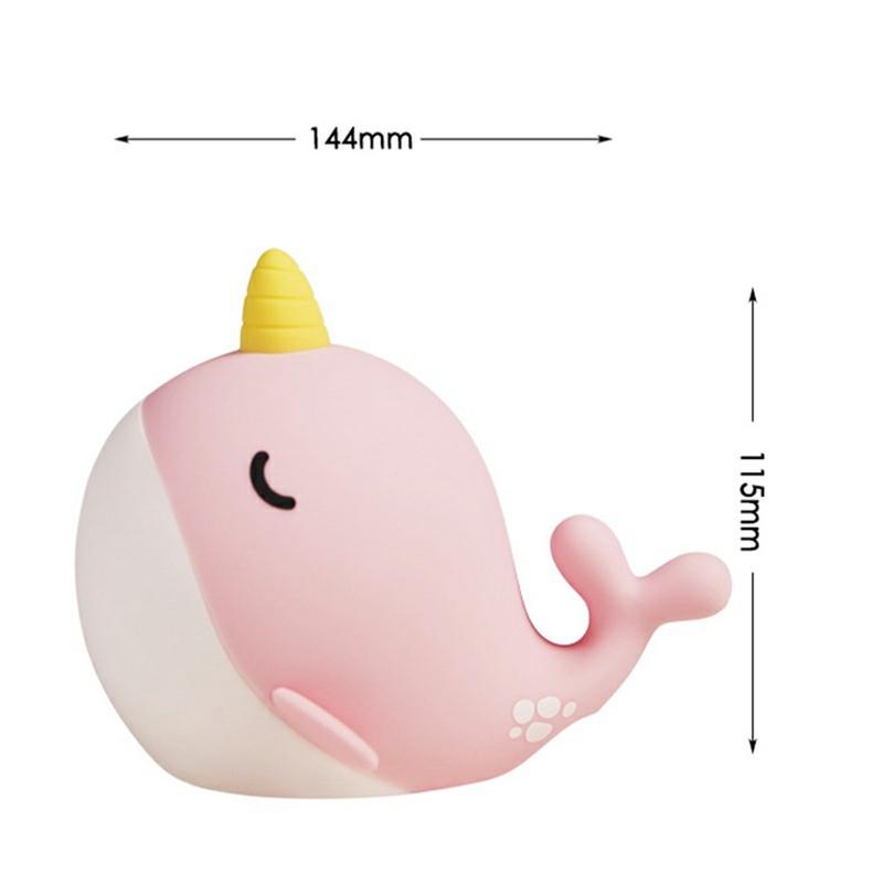 A044 Narwhal Silicone Night Light - Tap Control, USB-C Rechargeable & Soft Ambient Glow
