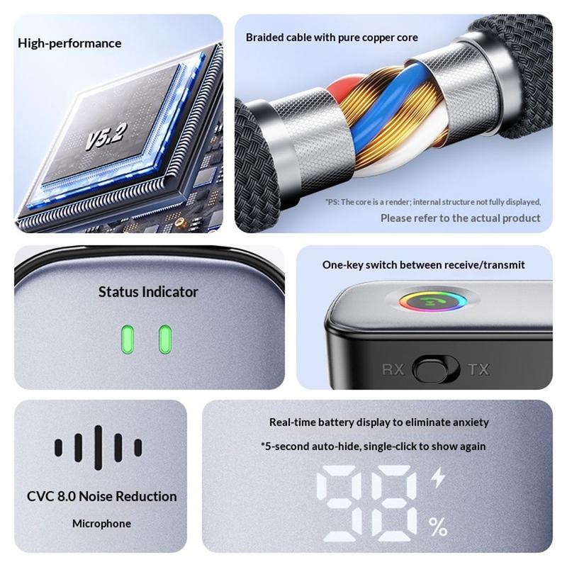 Powered by an advanced Bluetooth 5.2 chip, the adapter delivers fast pairing, low latency, and stable connections. It supports multiple audio decoding formats for clear, balanced sound during music playback and calls.