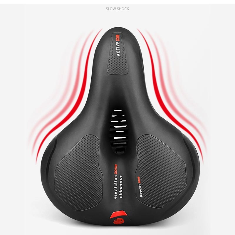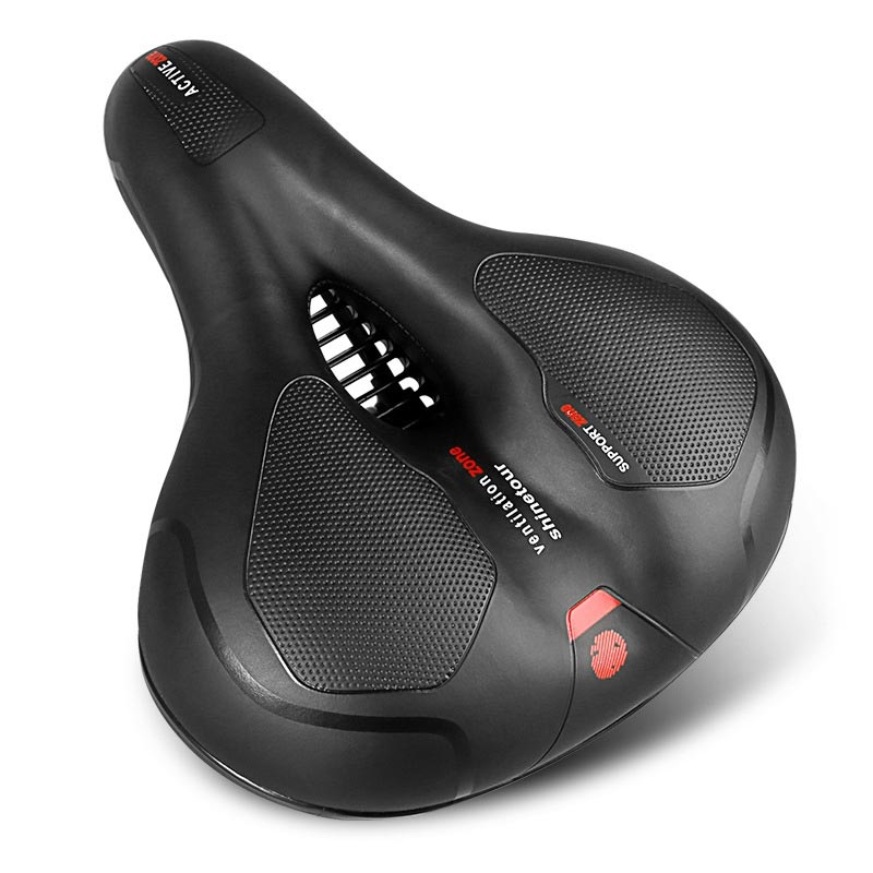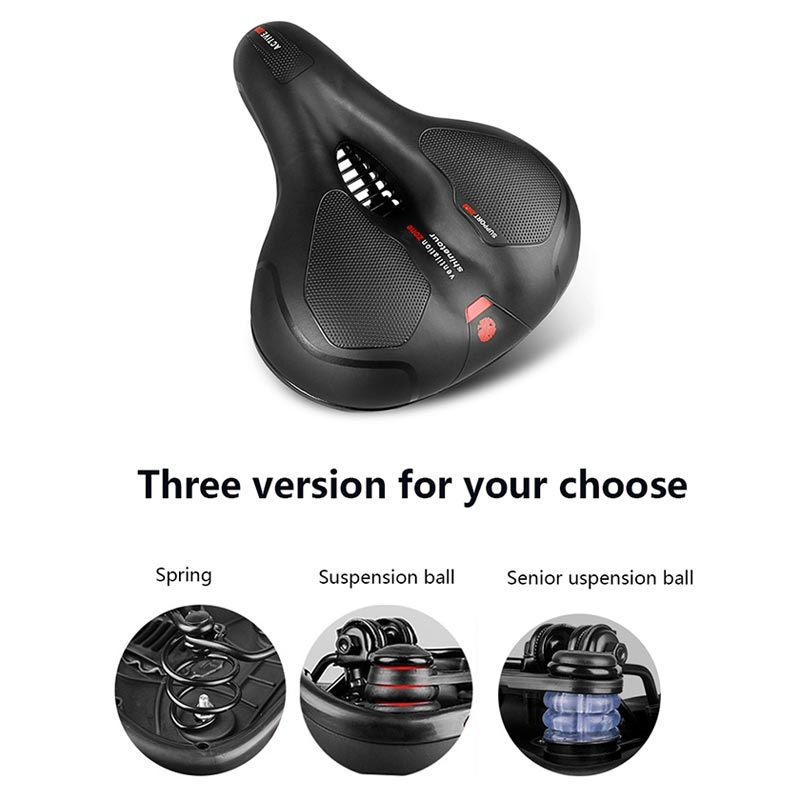 Wide Soft Padded Bike Seat - Shockproof Reflective Bicycle Saddle with Suspension Ball