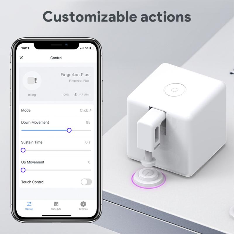The Fingerbot Plus can automate virtually any device with a physical button — from coffee machines and air conditioners to wall switches and desktop electronics. Its precision motor and customizable push distance make it adaptable to countless use cases, bridging the gap between traditional appliances and modern smart-home technology.