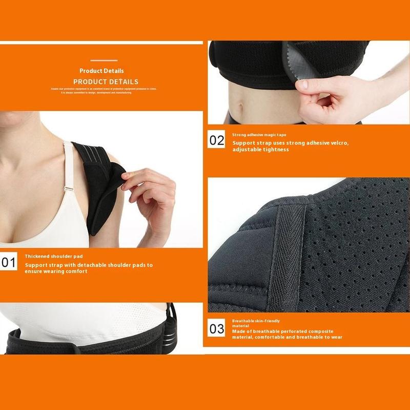 Flexible, adjustable straps allow the brace to be adapted to different body types, ensuring a secure and supportive fit without restricting movement.