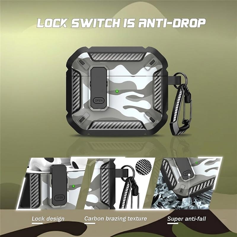 Camouflage Shockproof TPU Case with Carabiner for AirPods 4 - with Wireless Charging Support