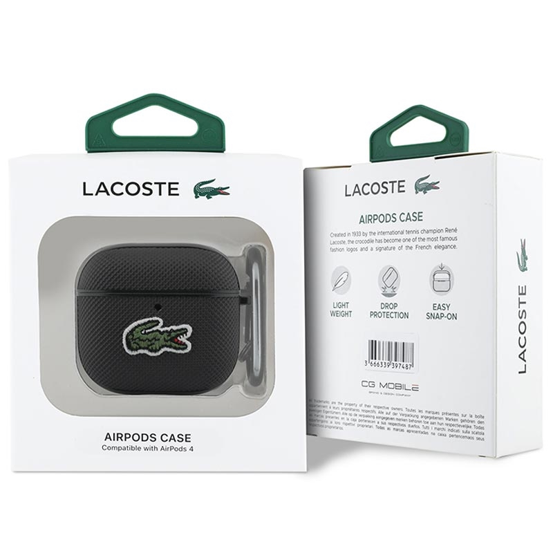 Protect your AirPods 4 in style with the Lacoste Petit Piqué Croc Logo Patch Case. Inspired by the iconic Lacoste polo shirt fabric, this lightweight cover combines everyday protection with timeless fashion. Made with precise craftsmanship, it fits snugly on your AirPods, shielding them from scratches, bumps, and daily wear. The design is completed with an embroidered crocodile logo patch, giving the case a premium and recognizable character. A practical carabiner is included, allowing you to attach the case to a bag, backpack, or keys for convenient access wherever you go.