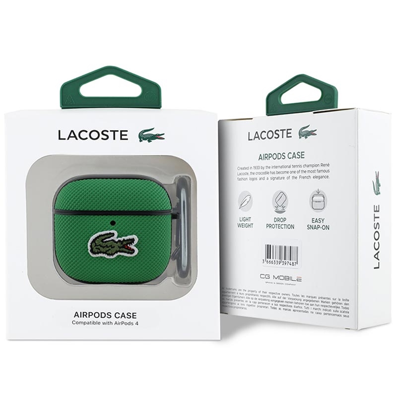 Lacoste Petit Pique Croc Logo Patch Case for AirPods 4 – with Carabiner