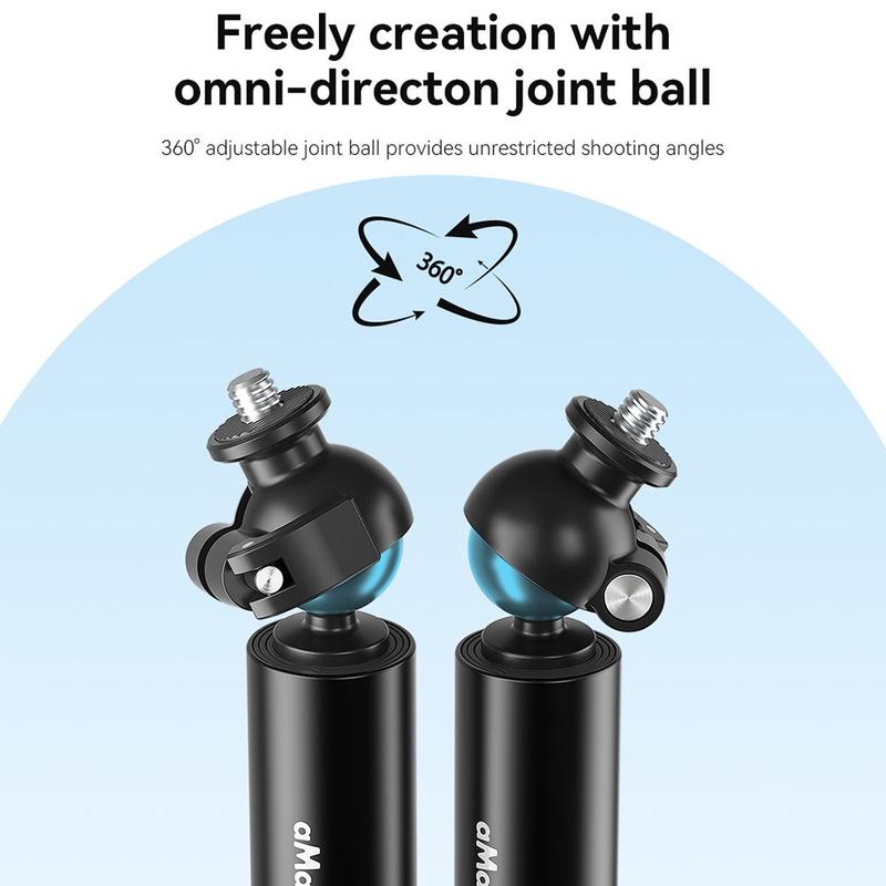 Capture every angle with the AMAGISN 120cm Sports Camera Selfie Stick, designed for DJI, GoPro, and Insta360 cameras. Featuring a 360° angle-free adjustment, this selfie stick allows for creative freedom and perfect shots from any perspective. Built from aviation-grade aluminum, it’s both durable and lightweight, making it ideal for on-the-go use. The two-speed locking mechanism ensures stability, while the stainless steel screw provides secure attachment. Compatible with tripods, thanks to the 1/4" thread connection.