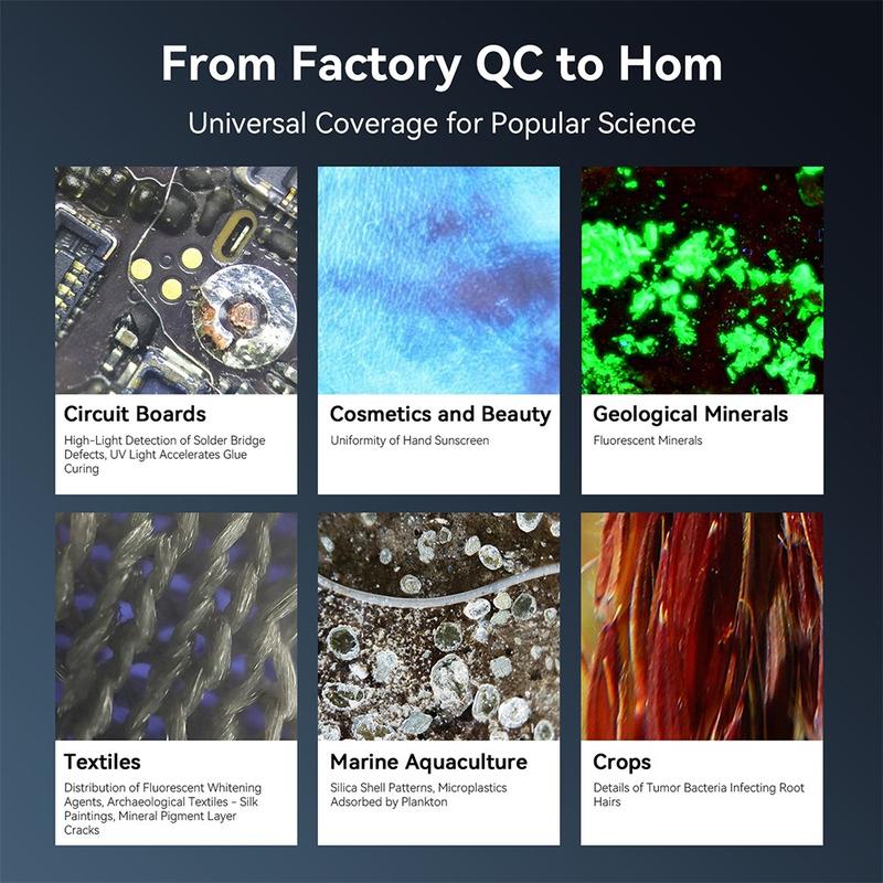 - Dual UV & LED Lighting System - Equipped with 18 high-brightness LEDs and 6 professional 365nm UV lamps, delivering 19 adjustable light modes for different observation needs.