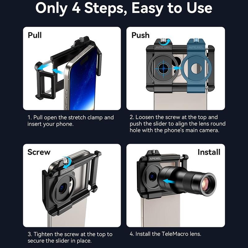 The APEXEL APL-TM6 offers excellent flexibility in one compact kit, replacing the need for multiple separate lenses. Its combination of telephoto reach and macro precision makes it suitable for a wide range of shooting scenarios, while the universal clip ensures easy use with most smartphones. Lightweight, portable, and optically advanced, it’s a smart upgrade for mobile photographers who want more creative control.