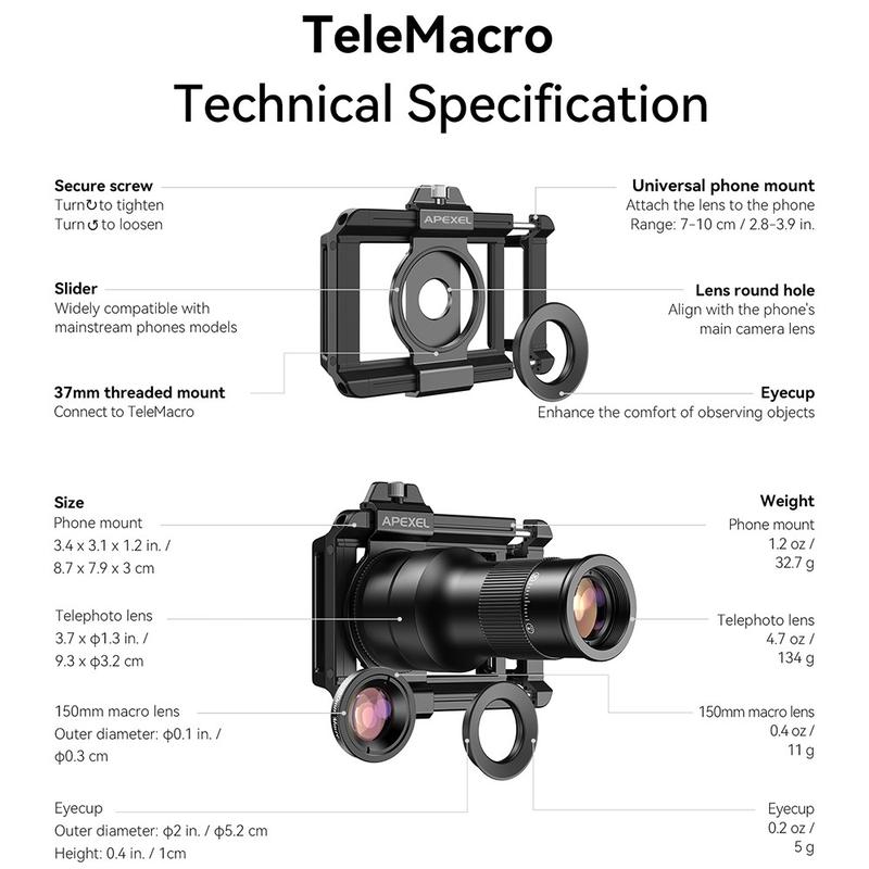 Apexel APL-TM6 2-in-1 Smartphone Telephoto & Macro Lens - 6x Telescope + 150 mm Macro