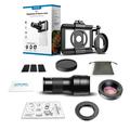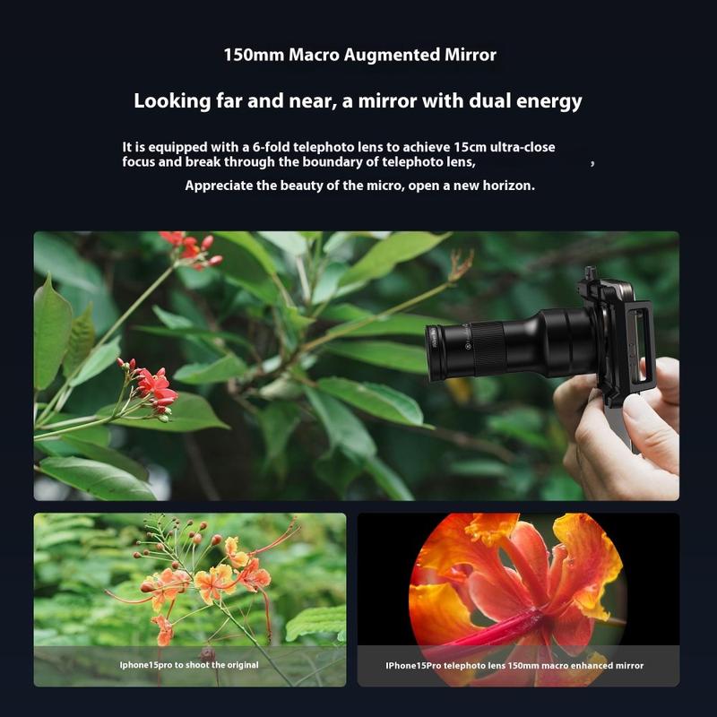 - 2-in-1 design: 6x telephoto lens + 150 mm macro lens