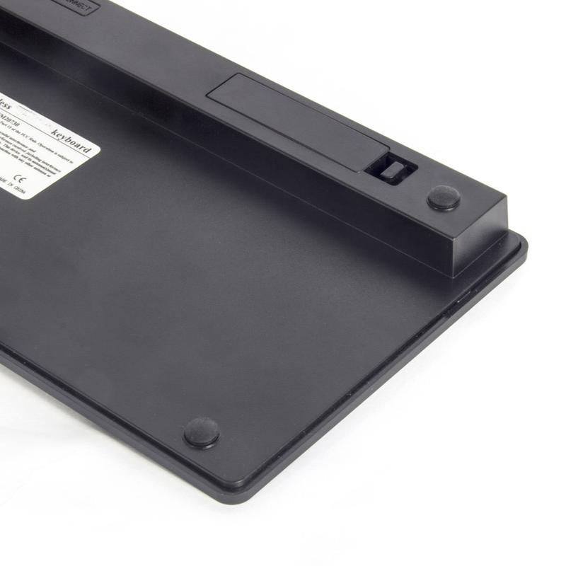 The keyboard uses 2 × AA batteries (not included), offering long battery life without the need for charging cables.