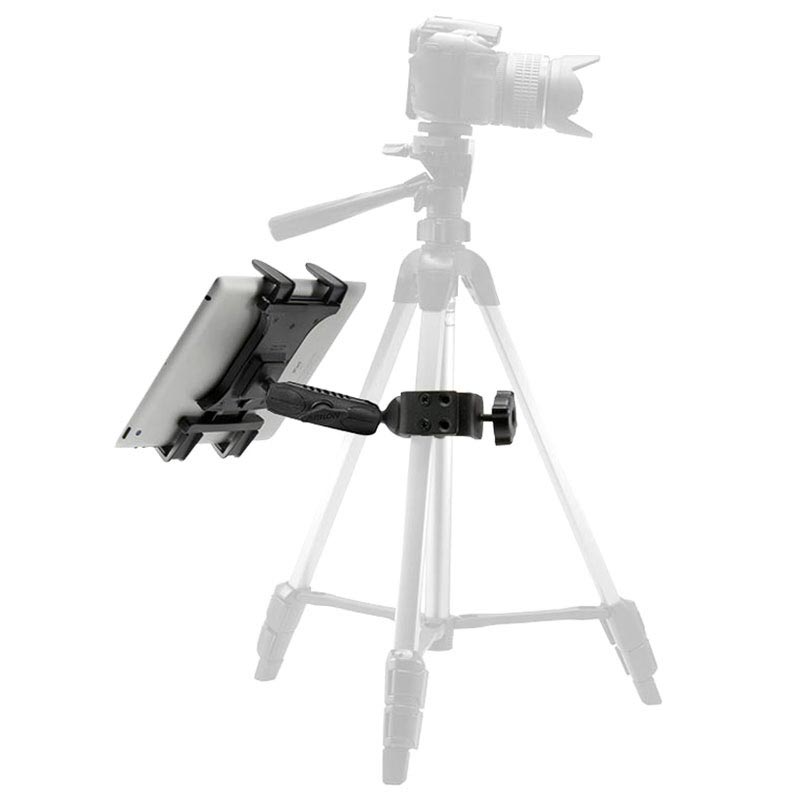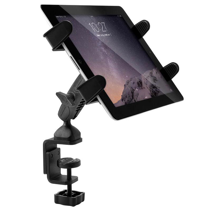 This universal desktop holder from Arkon Robust Mount series allows you to attach your tablet to tripods, desks, carts or any other table-like surfaces. It has an integrated C-clamp that provides a firm grip on surfaces that are 6mm to 60mm wide. The adjustable bracket fits tablets with width from 164mm - 221mm.
