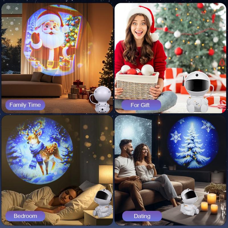 Add a magical touch to your holidays with the Astronaut Hugging Star Christmas Projector Lamp. This unique decorative light combines a space-inspired astronaut design with festive Christmas projections, making it a fun and creative addition to your home décor. With multiple patterns, adjustable brightness, and an automatic shut-off timer, it creates a cozy and enchanting atmosphere for family gatherings, parties, or bedtime relaxation.