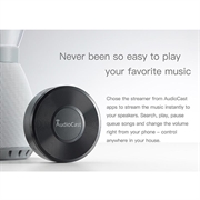 Powered via DC 5V / 1000mA, the Audiocast M5 connects to speakers or audio systems using a 3.5 mm audio output, making it compatible with a wide range of powered speakers, sound systems and amplifiers.