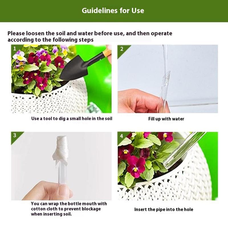 Using the globes is effortless—simply fill with water and insert into the soil at a 75°-85° angle. Once in place, the globes automatically regulate watering without the need for tools or complicated setup.