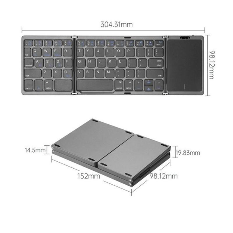 B089 Foldable Wireless Keyboard with Touchpad (81 Keys) - QWERTY, Bluetooth Compatible Multi Device, USB-C Rechargeable, Silent Keys