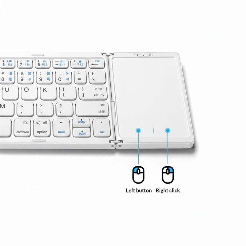 Work comfortably anywhere with the B089 Foldable Wireless Keyboard with Touchpad. Its slim tri-fold design fits easily into a laptop bag, while the built-in touchpad allows smooth navigation without a separate mouse. Designed for phones, tablets, and laptops, it is ideal for travel, remote work, and everyday productivity.