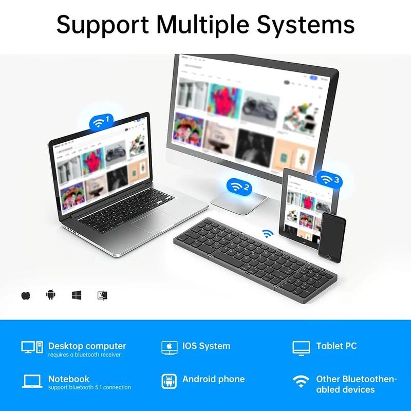 Work more comfortably wherever you are with the B089 portable tri-fold Bluetooth keyboard. Designed for flexible everyday use, this compact wireless keyboard opens into a practical full-size typing layout with a dedicated numbers area, then folds down into a smaller travel-friendly format when not in use. It is an excellent choice for mobile work, study, business trips, commuting, and home office setups.