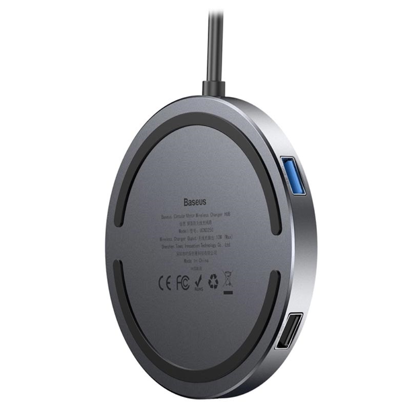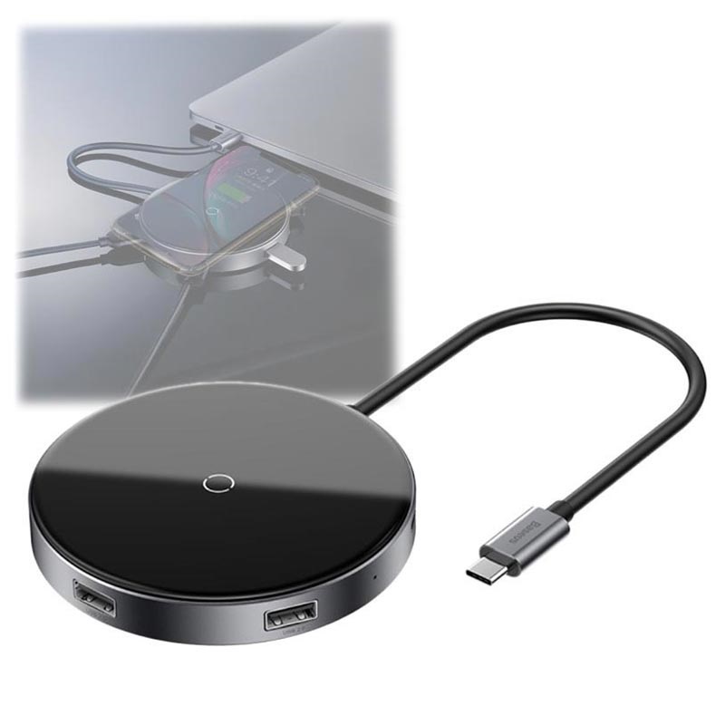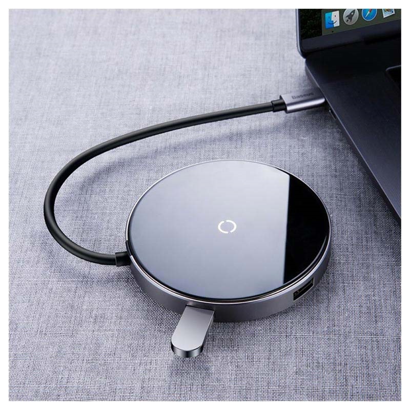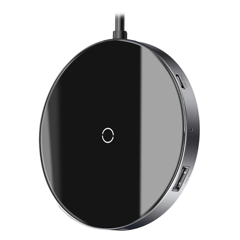 Baseus Circular Mirror 6-in-1 Qi Wireless Charger and Hub with Type-C PD, 4 USB Ports - 10W, 60W, 5Gbps, 480Mbps