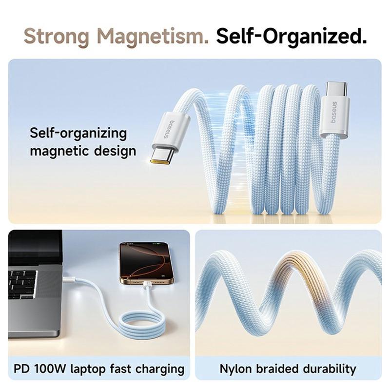 Upgrade your charging routine with the BASEUS Dynamic 4 Pro Type-C to Type-C Cable. Featuring a clever magnetic self-organizing design and 100W power delivery, this cable provides rapid, hassle-free charging for laptops, smartphones, and more. The durable nylon braided construction ensures long-lasting reliability, while the compact 1-meter length is perfect for both travel and everyday use.