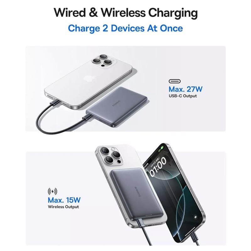 The Baseus PicoGo AM41 combines modern wireless convenience with powerful wired charging in one compact device. Qi2 magnetic alignment keeps your phone securely in place, while 27W USB-C fast charging handles demanding devices quickly. Its slim profile, clear LED indicator, and advanced safety features make it a dependable everyday power solution.