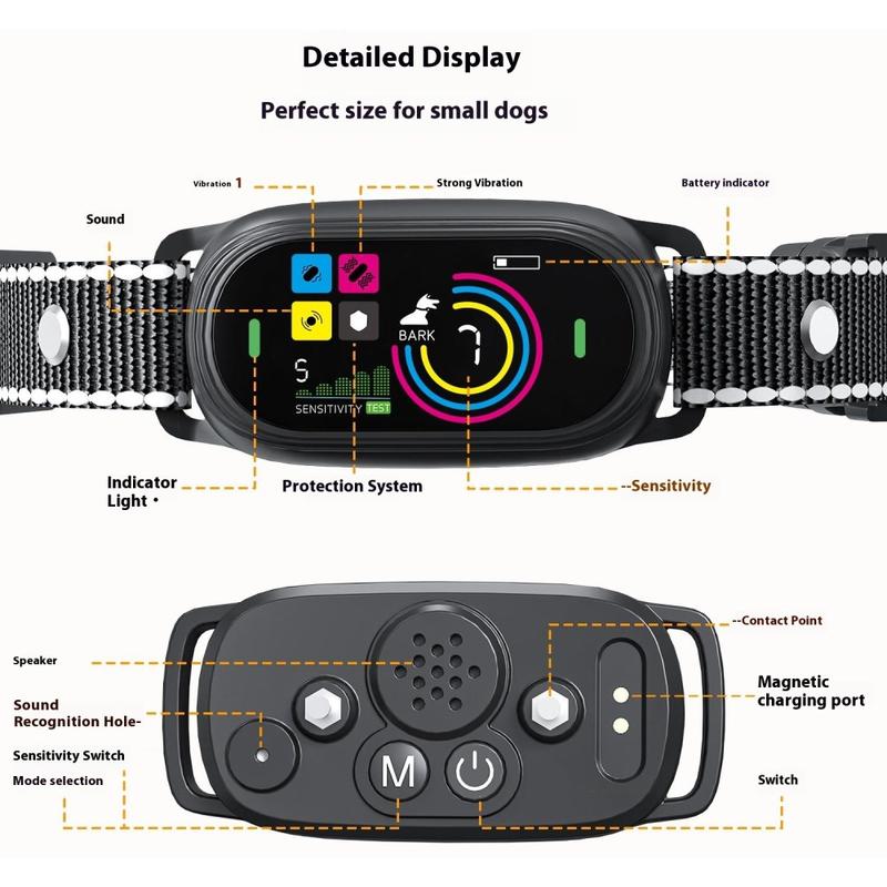 The BC3V Smart Anti-Bark Collar is designed to help train your dog safely and effectively. With sound, vibration, and strong vibration modes, it provides customizable feedback to reduce unwanted barking without the use of shock stimulation.