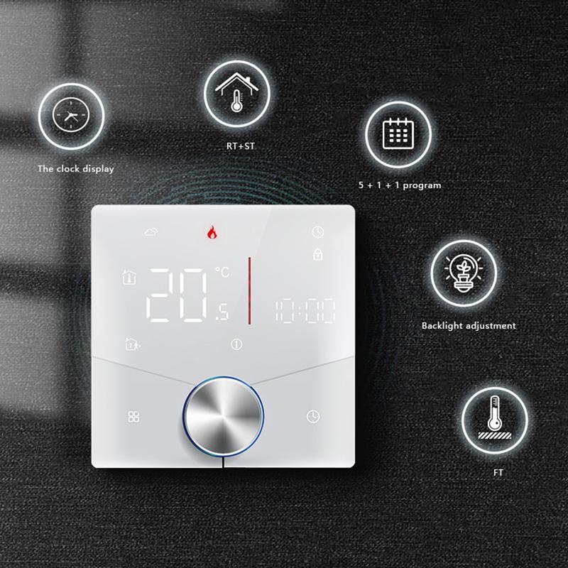 BHT-009GCLW smart Tuya thermostat is designed to give you precise and flexible temperature control for boiler heating, sauna rooms, and other compatible heating systems. With its slim modern design, smart connectivity, and programmable scheduling, it helps create a more comfortable indoor environment while making temperature management easier. This thermostat is a practical choice for homes, apartments, hotels, wellness spaces, and similar indoor settings.