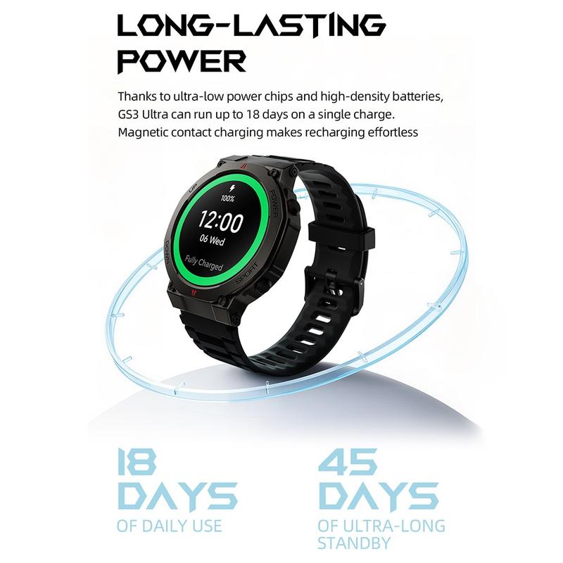 - Durable Build - Constructed with a zinc alloy frame and Corning Gorilla Glass, the GS3 Ultra is tough enough for everyday wear and intense workouts.