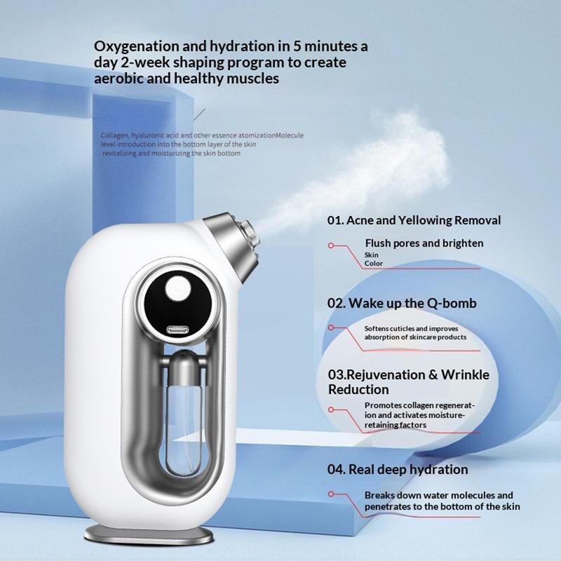 BM-043 Nano Oxygen Injection Facial Moisturizing Steamer - Portable Handheld Mist Sprayer with Blue Light