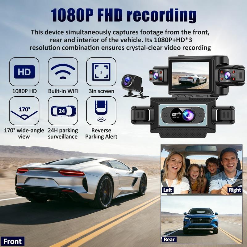 Get broader road coverage and more peace of mind with the C313 4-channel WiFi dash cam system. Designed to record multiple angles at the same time, it captures front, left, right, and rear views to help reduce blind spots and document what happens around your vehicle more clearly than a standard single-lens dash cam. The wide-angle camera setup and 360 coverage concept make it a practical choice for daily driving, parking protection, and tighter maneuvering in busy streets or parking lots.