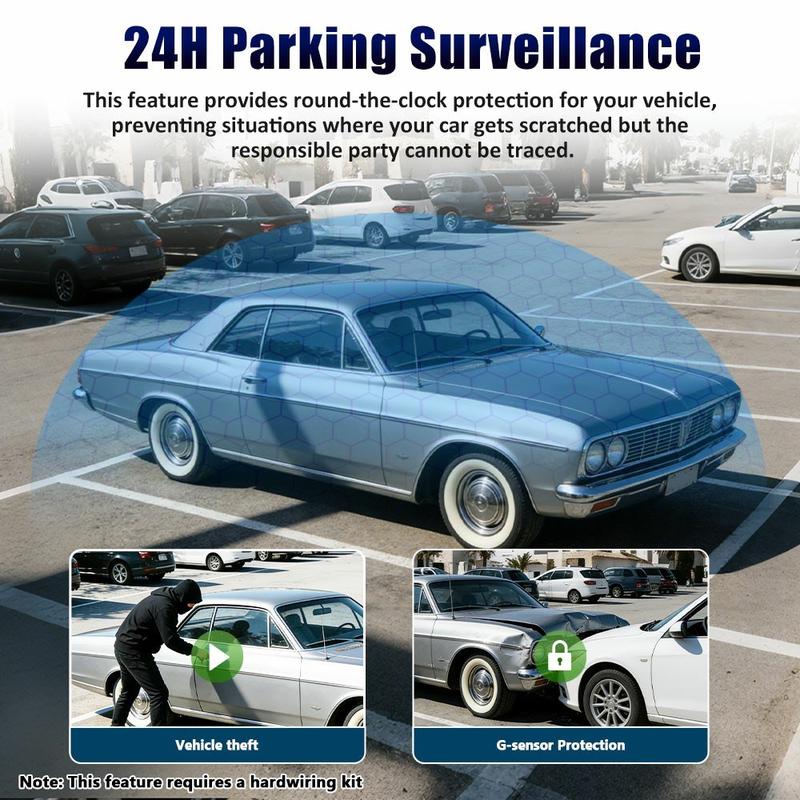 For best performance, use a good-quality microSD/TF card and format it regularly in the camera if supported. Parking monitor functions may require continuous power depending on the installation method.